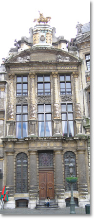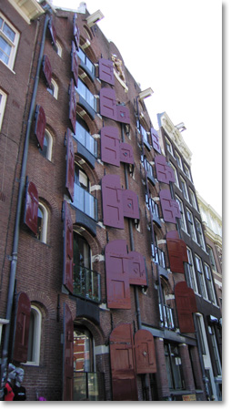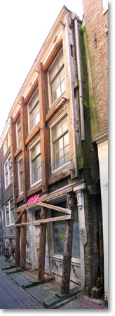 Braced to keep from collapsing, this is one of many leaning houses in Amsterdam.